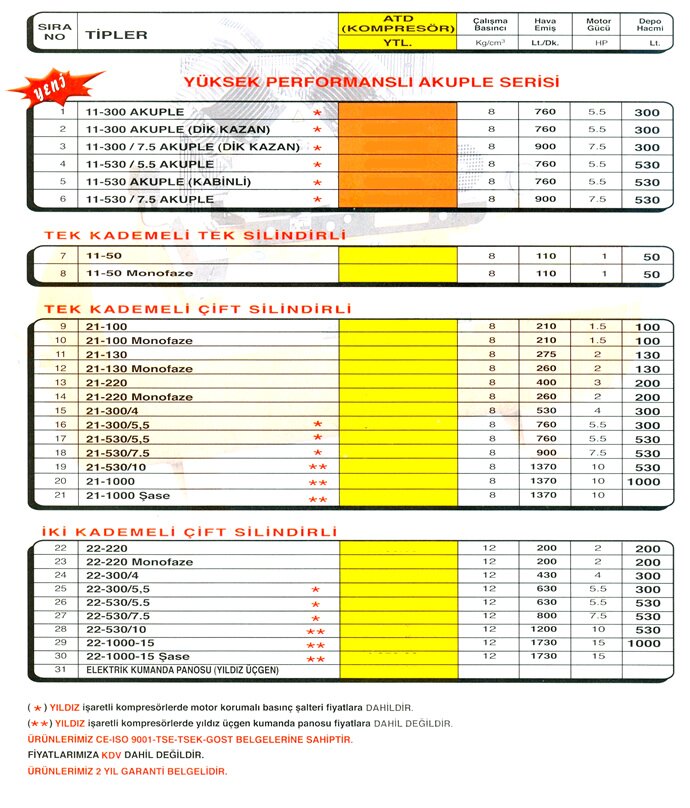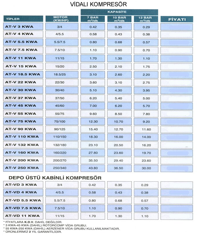 Hava Kompresörlerinde orjinal İtalyan malzeme ile 300 ve 500 lt. 14 Atmosfer kompresörlerin imalatı ve servisi yapılmaktadır.